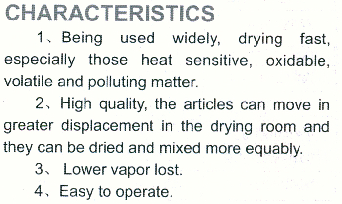2.產(chǎn)品質(zhì)量高,干燥過程耙齒不斷正反轉(zhuǎn)動,被干燥物料攪拌均勻,由于產(chǎn)品粒度細(xì),不需粉碎操作即可包裝。